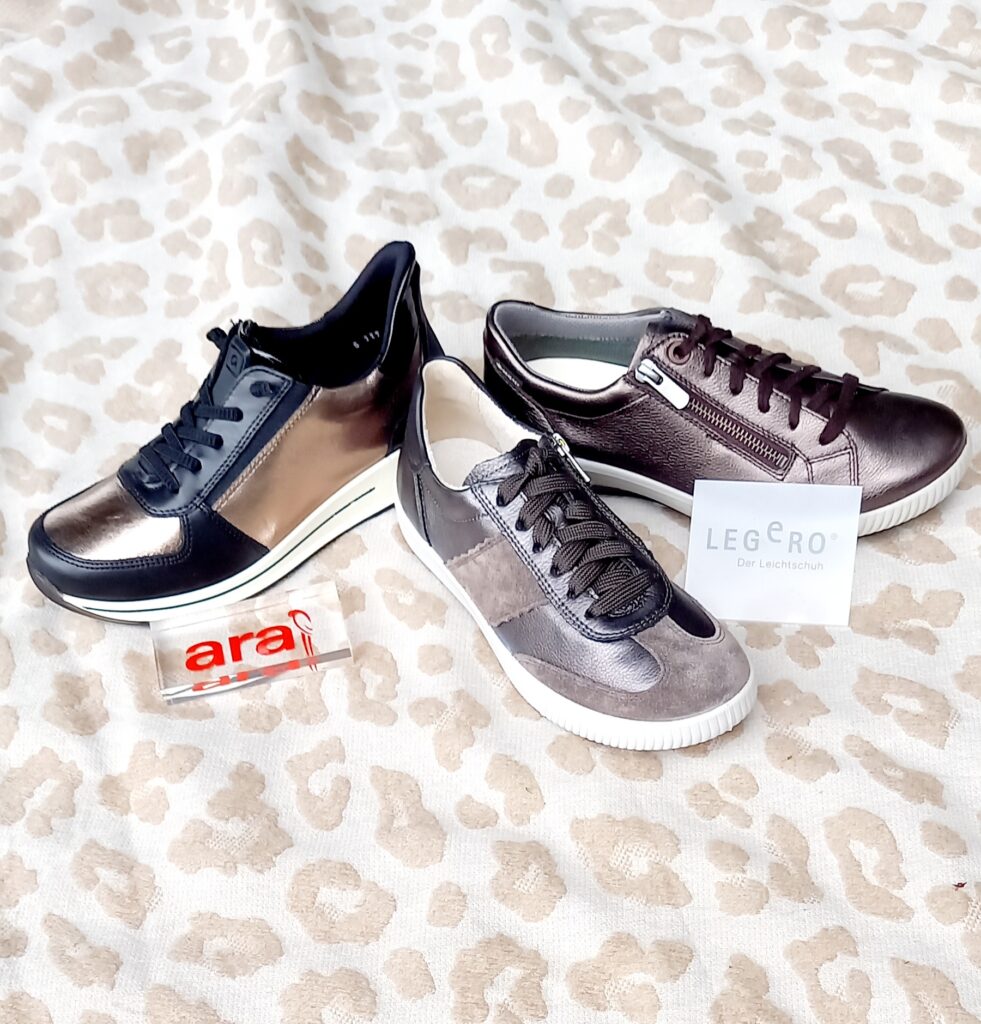 Mit Marken wie Gabor, Legero, Ara und Josef Seibel zeigt sich der Herbst von seiner komfortablen Seite. Modische Sneaker in Metallic- oder Naturtönen sorgen für einen eleganten Auftritt, während weiche Sohlen und flexible Materialien für ganztägigen Tragekomfort stehen.