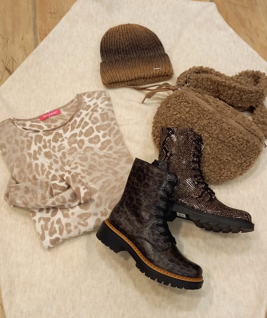 Ob mit Leo-Muster oder grafischem Print, jedes Outfit bekommt durch kleine Details wie eine passende Tasche oder einen Schal seine eigene Note.